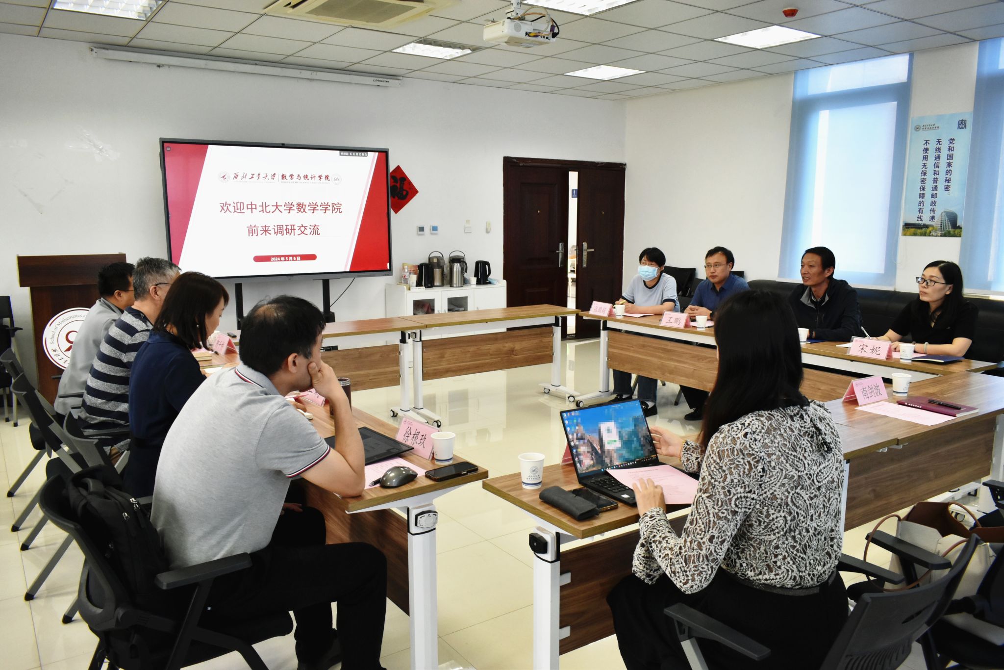 5月7日下午,中北大学数学激情视频党委书记薛亚奎、副院长王鹏、大学数学教学中心主任宋妮、综合科科长张鹏娟一行四人来激情视频