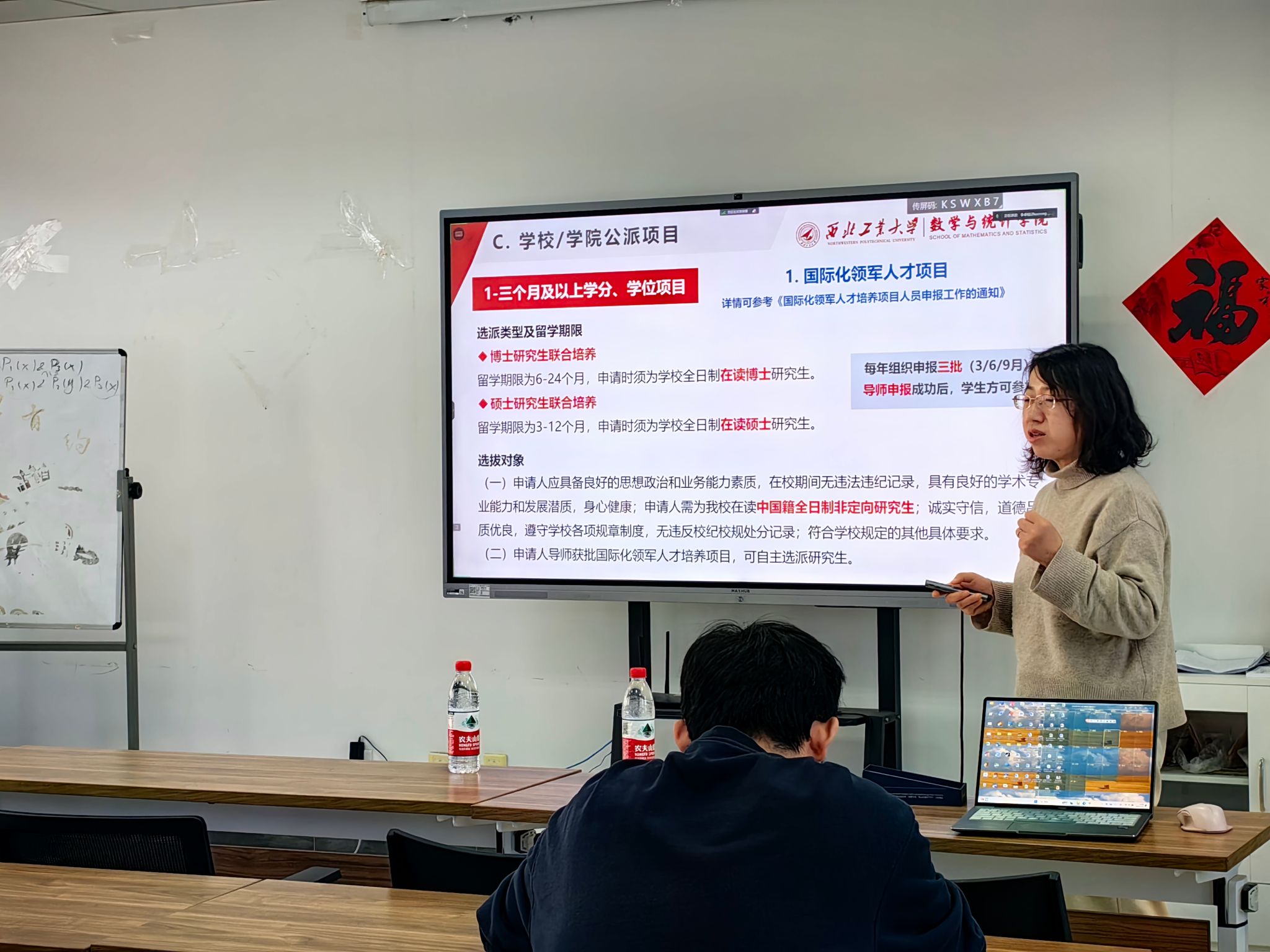 李卓榕在国家公派留学项目里分别介绍了创新型人才合作培养项目、俄乌白国际合作培养项目、国家建设高水平大学公派项目;在赴国际组织实习项目里,介绍了国家留学基金委国际组织实习生及学校认定和选派的政府间国际组织实习生;而在学校/激情视频公派项目里,肖曼玉介绍了领军人才项目、本科赴外毕设、学分/学位交换项目、暑期夏令营、暑期国际学堂、国际会议等。项目介绍完成后,李卓榕随后对各类项目的资助情况及申请流程相关情况进行了说明,最后列举了申报项目的注意事项以及各种项目信息的查询网站等。