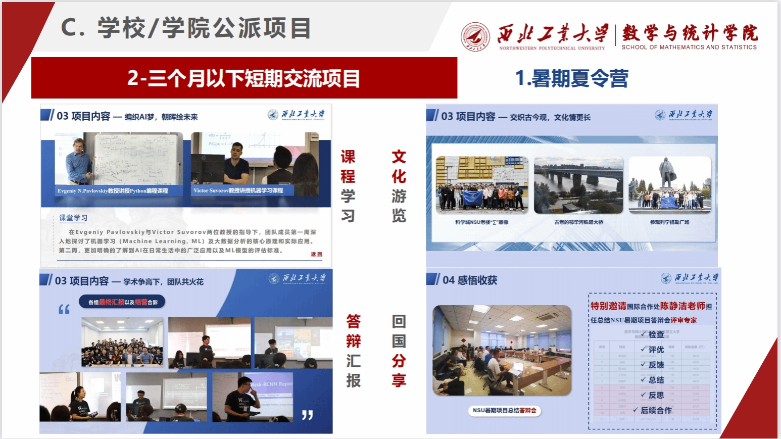 宣讲会分为三个部分:分别为学生出国境“项目介绍”,“资助办法”和“手续流程”。在学生出国境“项目介绍”过程中,根据派出类别,又分为国家公派留学项目、赴国际组织实习项目及学校/激情视频公派项目三种形式。