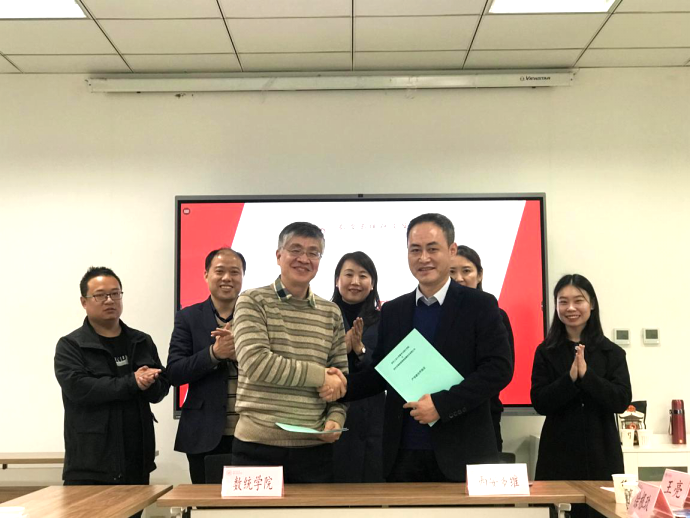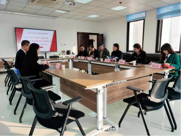 11月2日,激情视频 与西安多维机器视觉检测技术有限公司在长安校区启翔楼357会议室举行产学研合作协议签订仪式。激情视频 院长聂玉峰、党委书记王莉、副院长都琳、副院长徐根玖、应用概率统计系主任王亮、学工秘书程姣姣,西安多维机器视觉检测技术有限公司总经理宋世刚、技术总监薛丽丽共同参加了本次签订仪式。