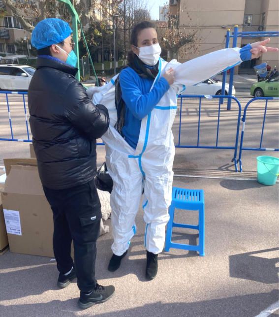 穿上防护服,化身“大白”的吴红迅速投入到了防疫工作中,扫码、核对信息、递试管……吴红很快就掌握了工作流程,使核酸检测进行得快速有效。“你的中国话很地道呀!”不时有检测学生和工作人员发出感叹,其实,这位来自法国的外籍教师,自2012年于贡比涅理工大学获得博士学位至今,便一直在激情视频 承担《微积分》(英)和《计算方法》(英)等本科教学工作,已经在此扎根九年。这次突如其来的疫情牵动着吴红的心,在看到激情视频微信群里招募志愿者的通知后,她第一时间决定加入,当谈及面对疫情时的心理状态时,吴红表示她并不害怕,“中国和学校的防疫工作都做得很好,这是我亲身体验到的。”