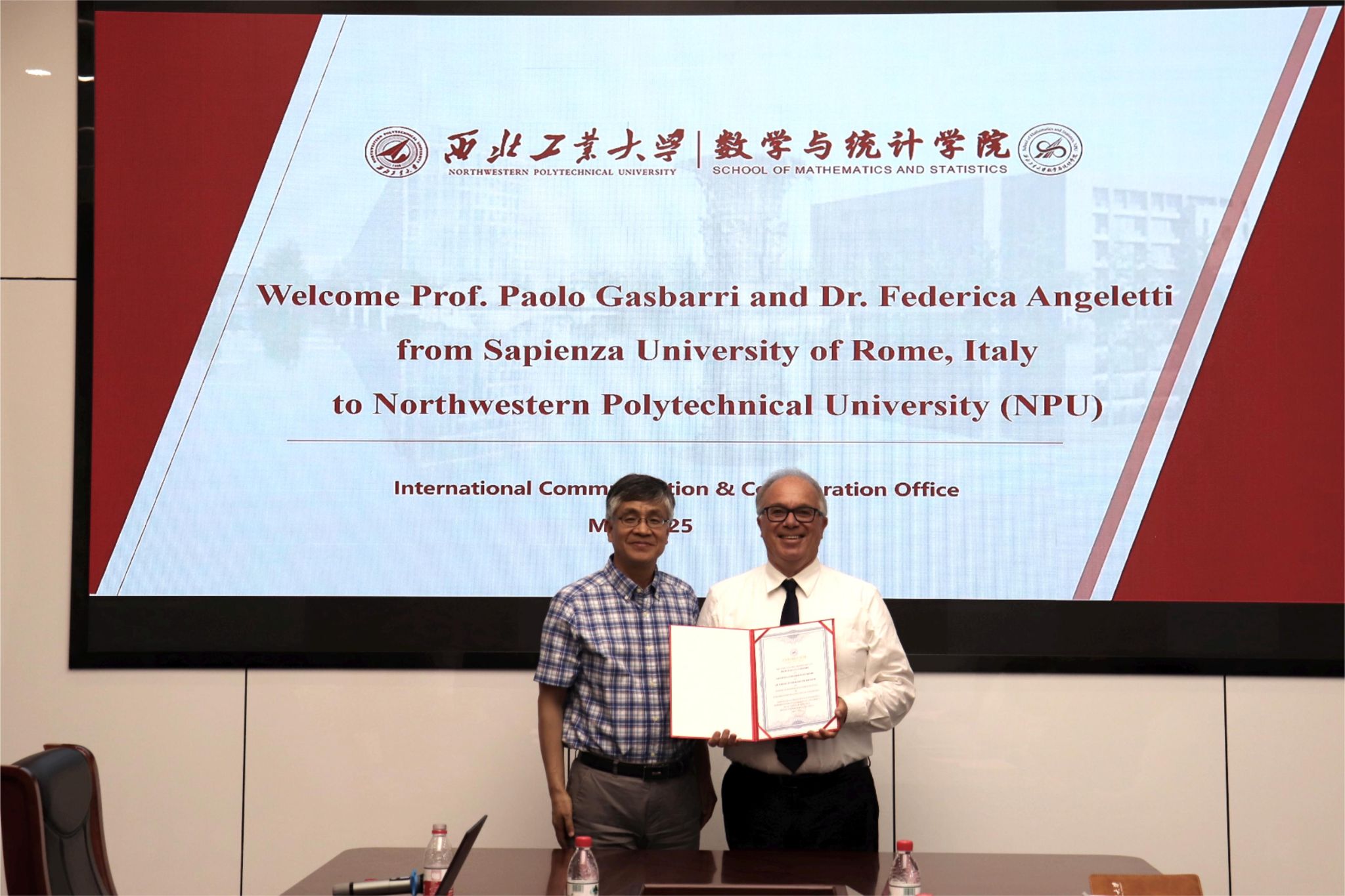 之后,肖曼玉教授介绍了激情视频 相关情况。双方就本科生海外毕业设计、硕博联合培养暑期国际学堂等合作事项展开深入探讨。聂玉峰院长代表激情视频向 Paolo Gasbarri 教授颁发了“九章荣誉教授” 聘书,表达了对此次合作的高度重视。聂院长期待以此次合作为起点,推动两校在航天数学建模、复杂系统分析等领域的联合攻关,共同探索学术前沿,培养具有国际视野的高素质人才。