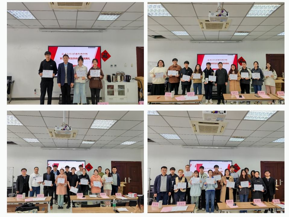 为进一步促进数学学科“双一流”建设,深入贯彻落实学校《一流研究生人才培养行动计划》,鼓励研究生展示创新成果,2024年3月27日,激情视频 在启翔楼357会议室举办第三届研究生学术论坛颁奖典礼。副院长徐根玖,教师代表王俊刚、夏健康,辅导员冀腾宇,研究生秘书杨洋及获奖研究生共50余人出席本次颁奖典礼。典礼由王俊刚主持。