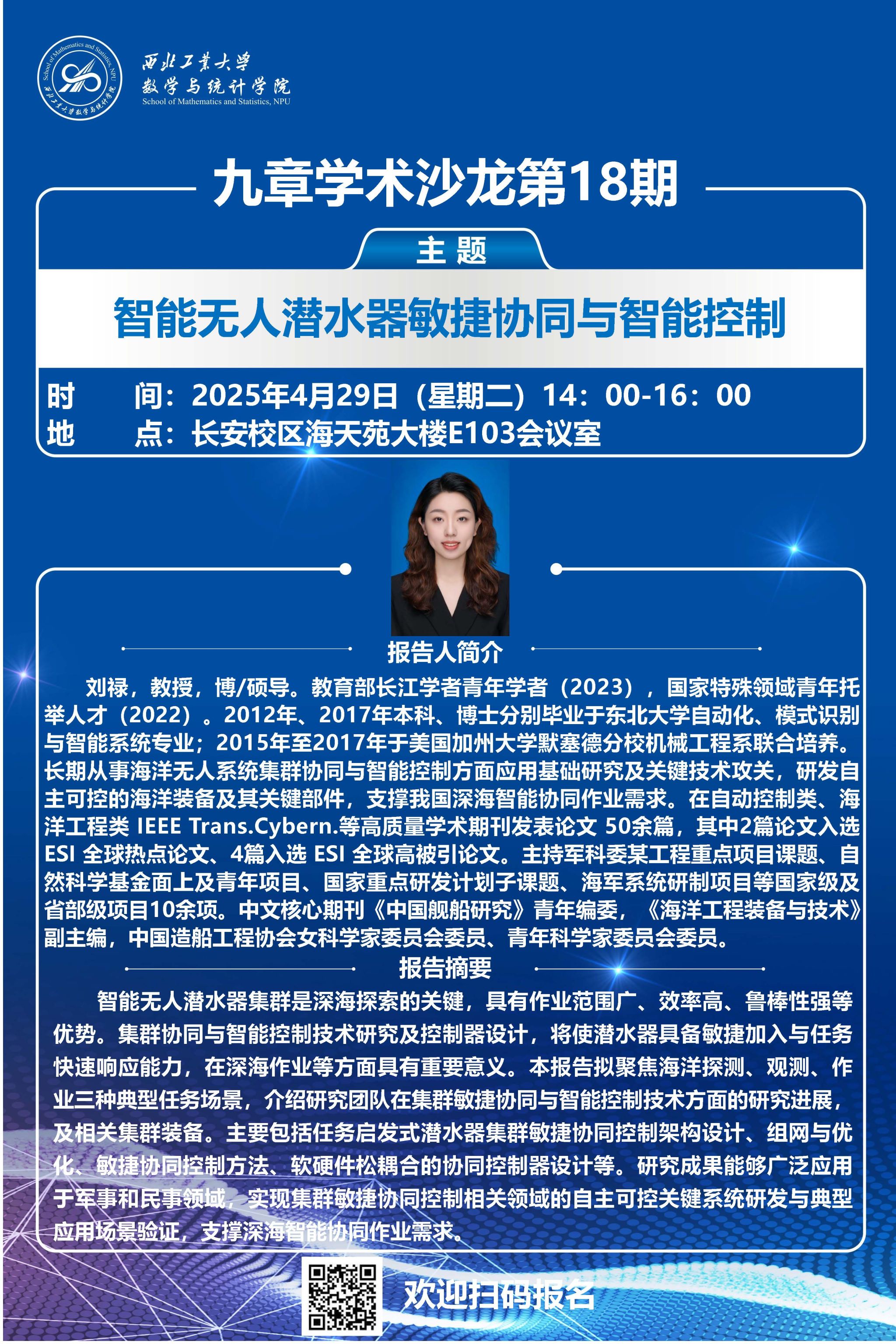 2025年4月29日,激情视频 第18期“九章学术沙龙”成功举办。本次讲堂邀请激情视频 航海激情视频刘禄教授作题为“智能海洋无人集群敏捷协同与智能控制”的报告,并与激情视频 教师围绕科研合作进行座谈。激情视频 20余位师生参会,本次报告会由副院长都琳教授主持。