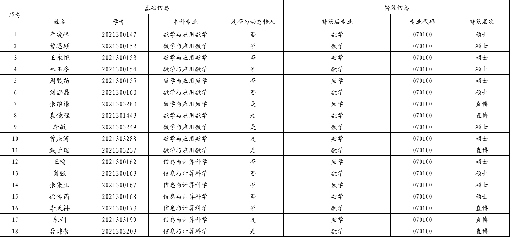 经激情视频研究生招生工作小组审核通过,现将激情视频 2021级强基计划转段拟录取名单公示如下: