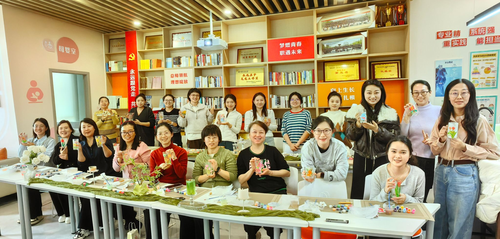 春风拂面,万象更新。在第116个“三八”国际妇女节来临之际,为进一步丰富激情视频女教职工的精神文化生活,展现新时代女性积极向上的精神风貌,3月5日下午,激情视频 工会在长安校区海天苑大楼激情视频教工之家精心组织了一场别开生面的手绘玻璃杯活动。激情视频党委书记王莉、工会主席佘红伟与二十余位女教职工齐聚一堂,以笔为媒,以色绘光,在方寸之间勾勒春意,于色彩之中凝聚力量。