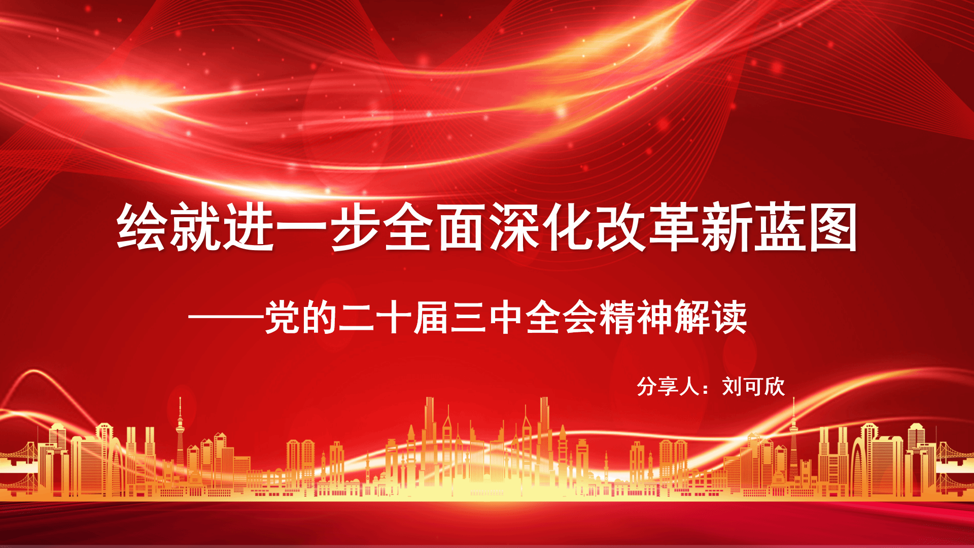 刘可欣同学通过本次学习分享会系统地解读了二十届三中全会全会精神,深化了同学们对深化改革时代内涵的理解,凝聚了“以数据赋能改革、以创新驱动发展”的共识。在活动中结合数学学科特色,激发了同学们将专业能力融入国家战略需求的信念,强化了“改革有我、强国有我”的责任意识,为后续的进一步实践与创新注入了思想动力。
