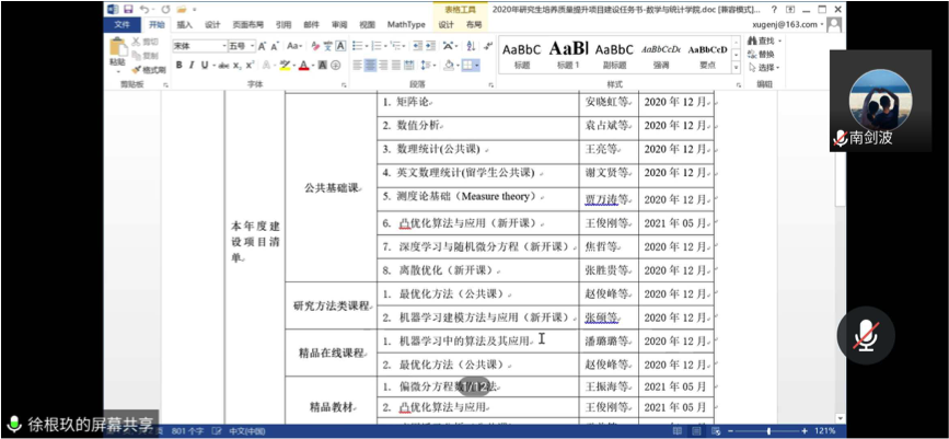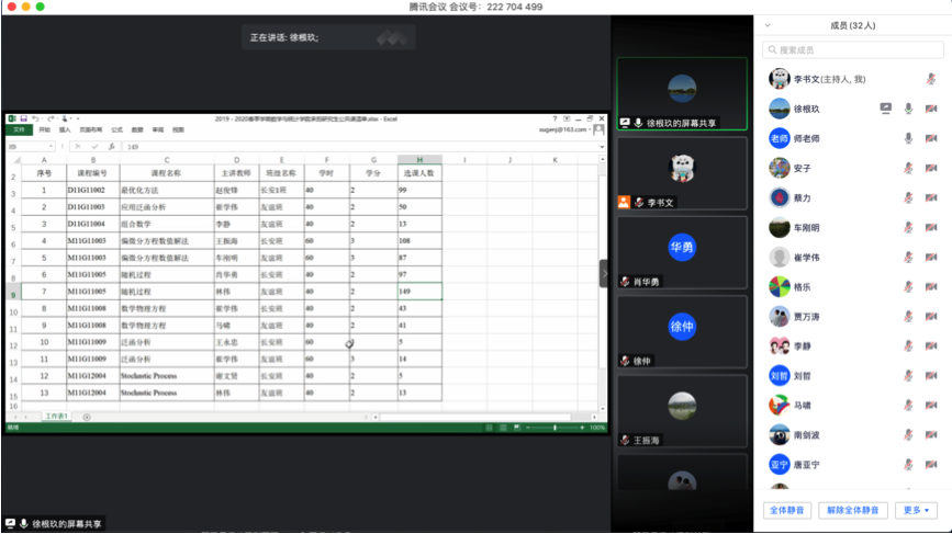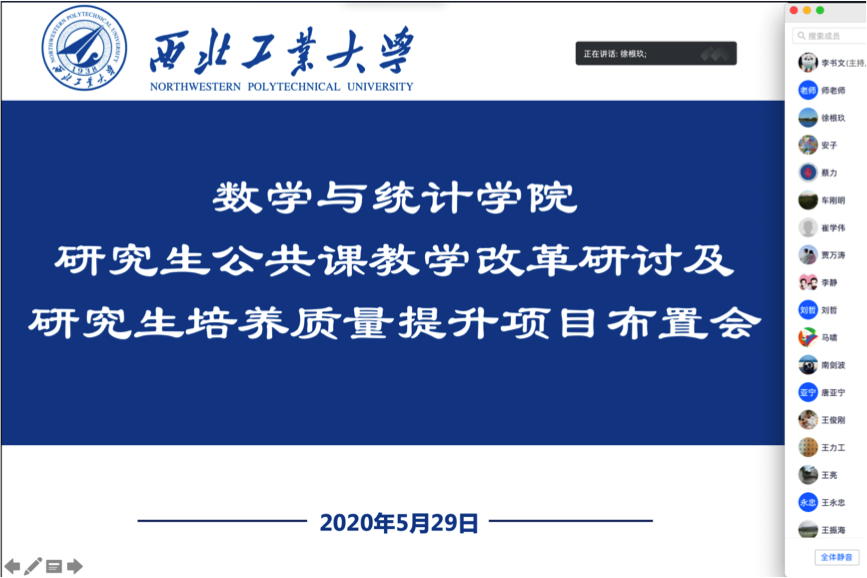 为贯彻落实教育部“在线教学与线下课堂教学质量实质等效”的要求,有效做好学生分批次返校期间线上、线下教学活动的平稳衔接,确保研究生招生规模扩大之后的数学公共课教学质量,规划新形势下研究生公共课的改革发展思路,推进公共课的教学改革,5月29日,激情视频 通过腾讯会议召开研究生公共课教学改革研讨及研究生培养质量提升项目布置会,激情视频院长聂玉峰、副院长徐根玖、主管研究生工作的二级学科负责人、公共课负责人、首席教授及任课教师及研究生培养质量提升项目负责人参加了此次会议,会议由徐根玖主持。