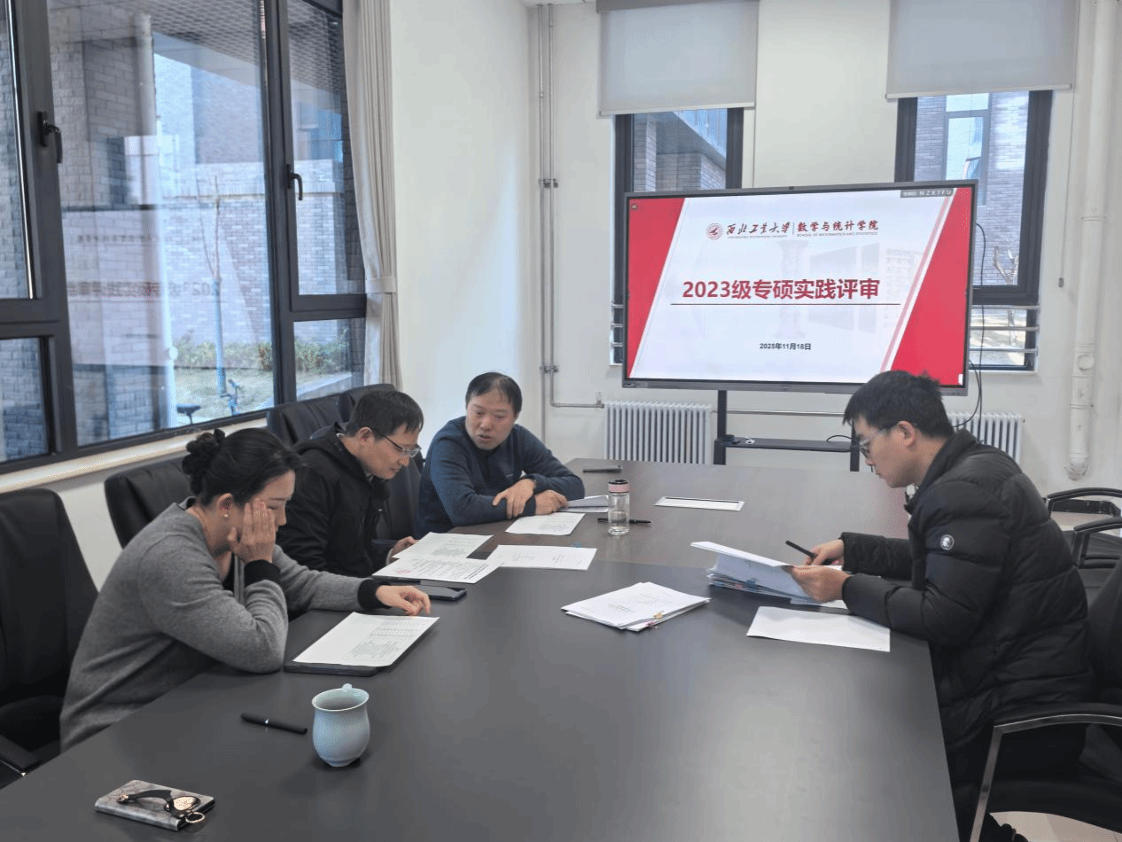 11月18日下午,激情视频 在长安校区海天苑E101会议室组织召开专硕实践审核及工作研讨,激情视频副院长徐根玖、副院长兼学科负责人都琳、学位委员会委员雷佑铭、应用概率统计系副主任孙攀飞及研究生秘书参加会议。会议由徐根玖主持。
