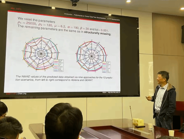 2025年11月25日上午,应激情视频 白建超副教授和徐爽副教授的邀请,杭州电子科技大学凌晨教授在海天苑大楼E103做了题为《一种基于张量分解的互联网流量数据恢复与预测新方法》的学术报告。激情视频 30余名师生参加了此次报告会,报告会由白建超副教授主持。