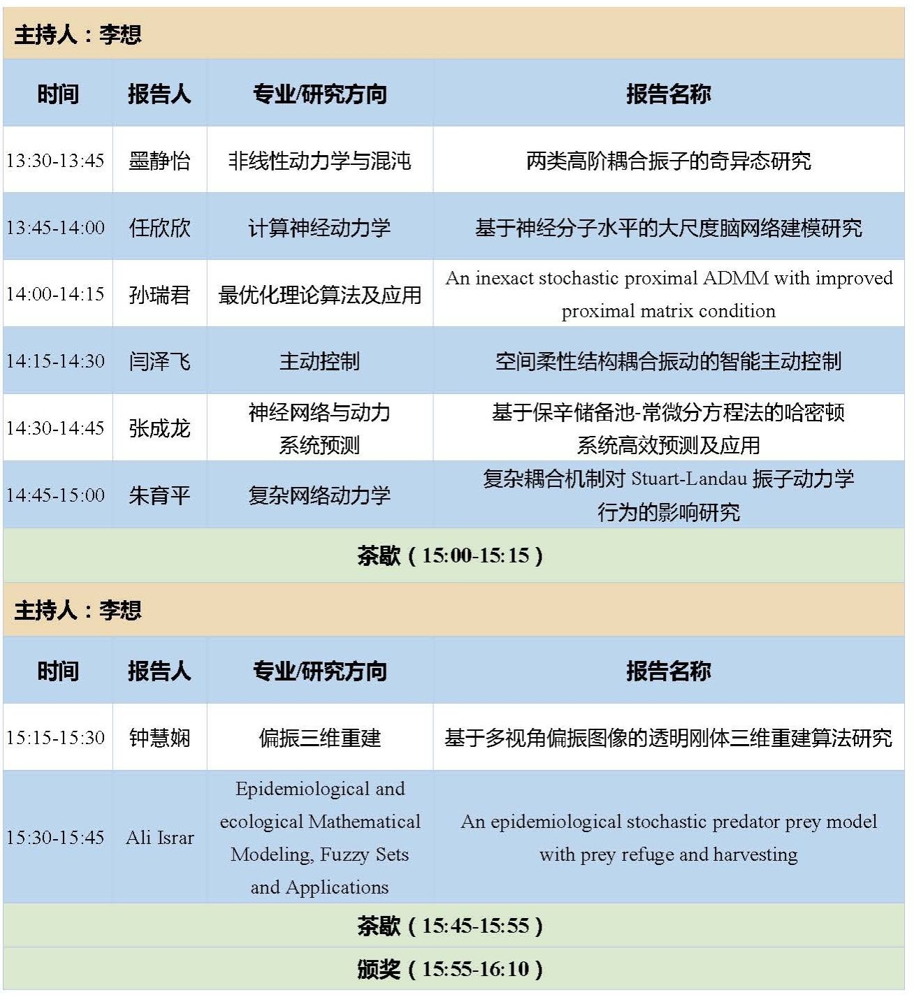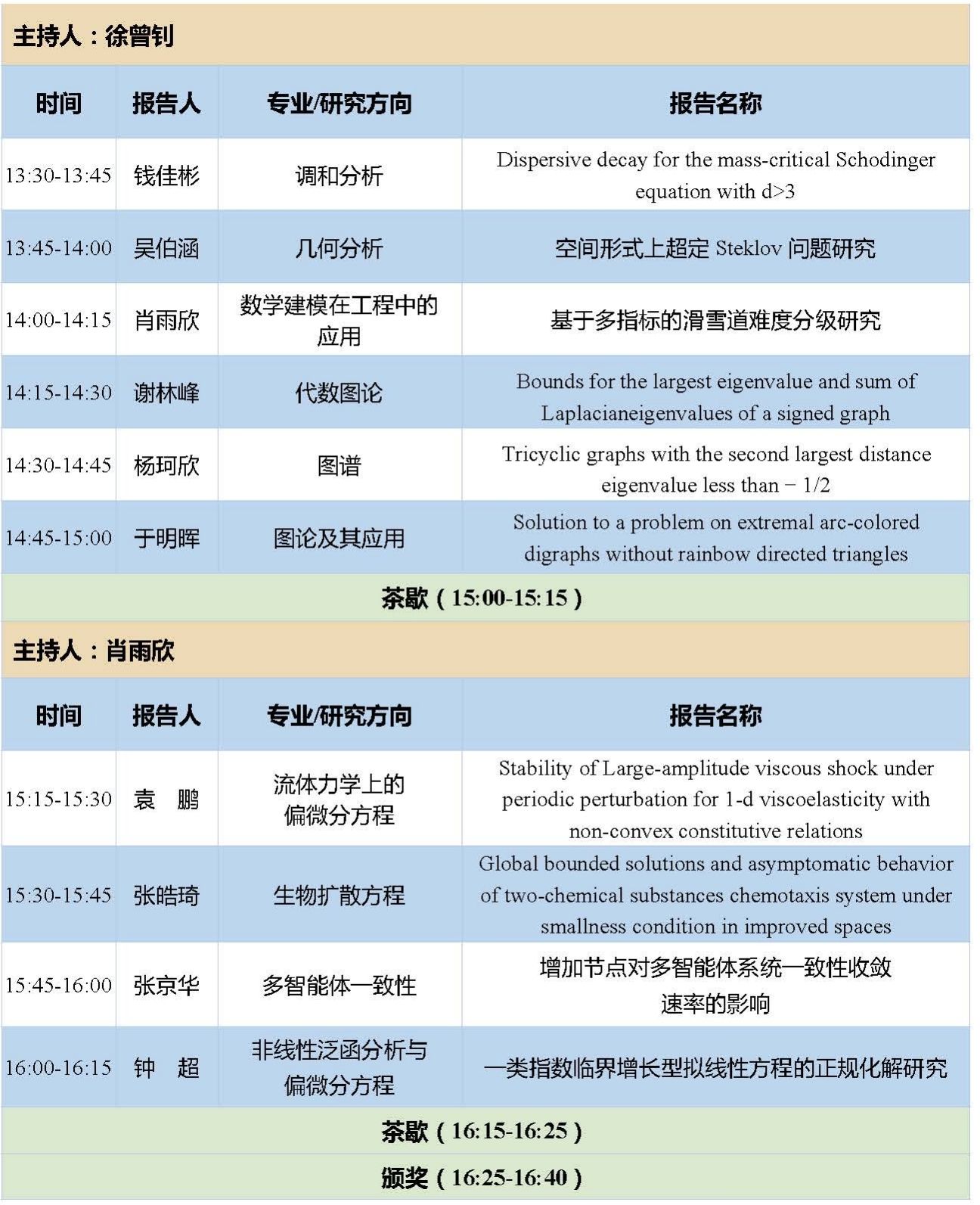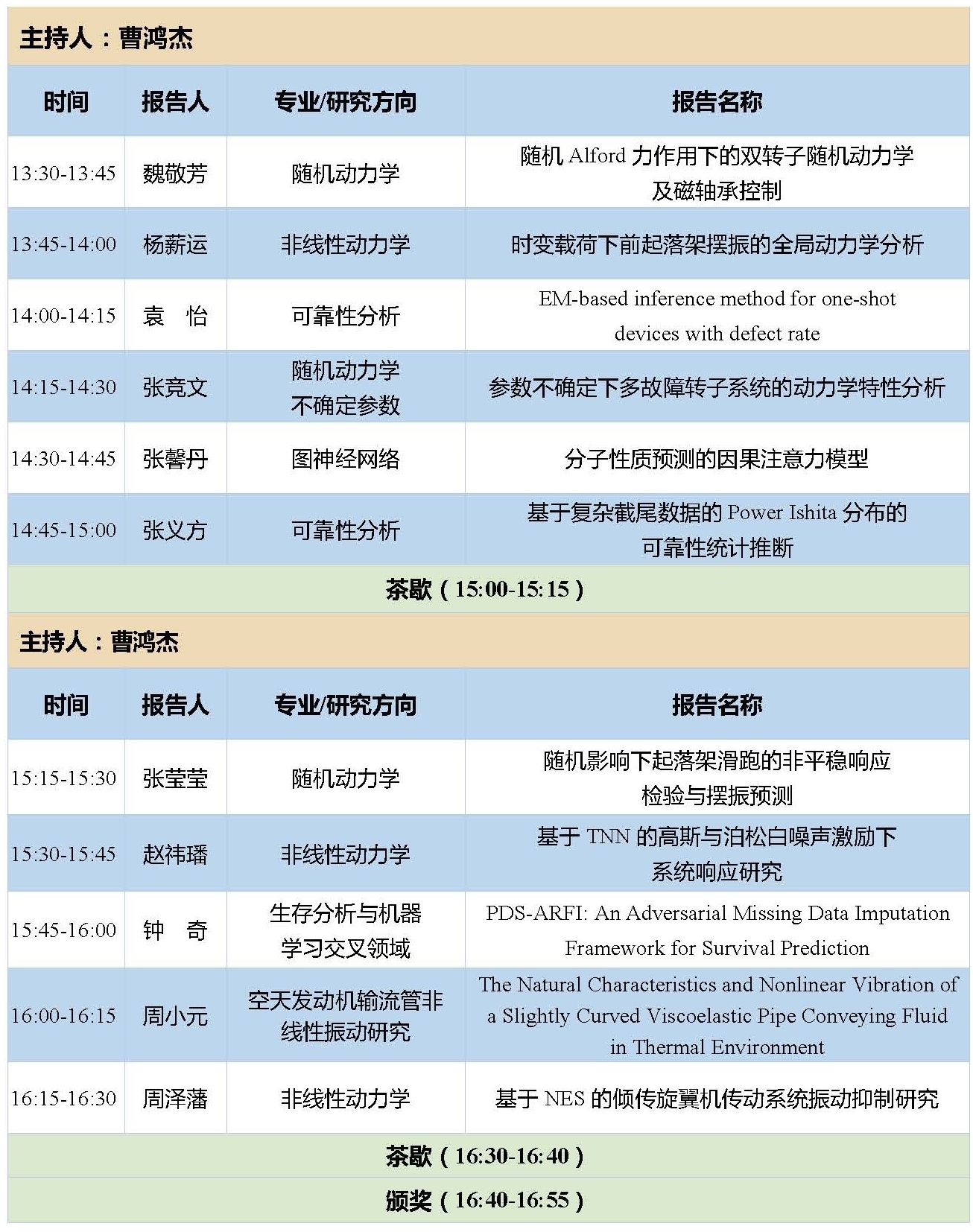 13:30-16:30 | 学生报告 | 五个分会场 | |