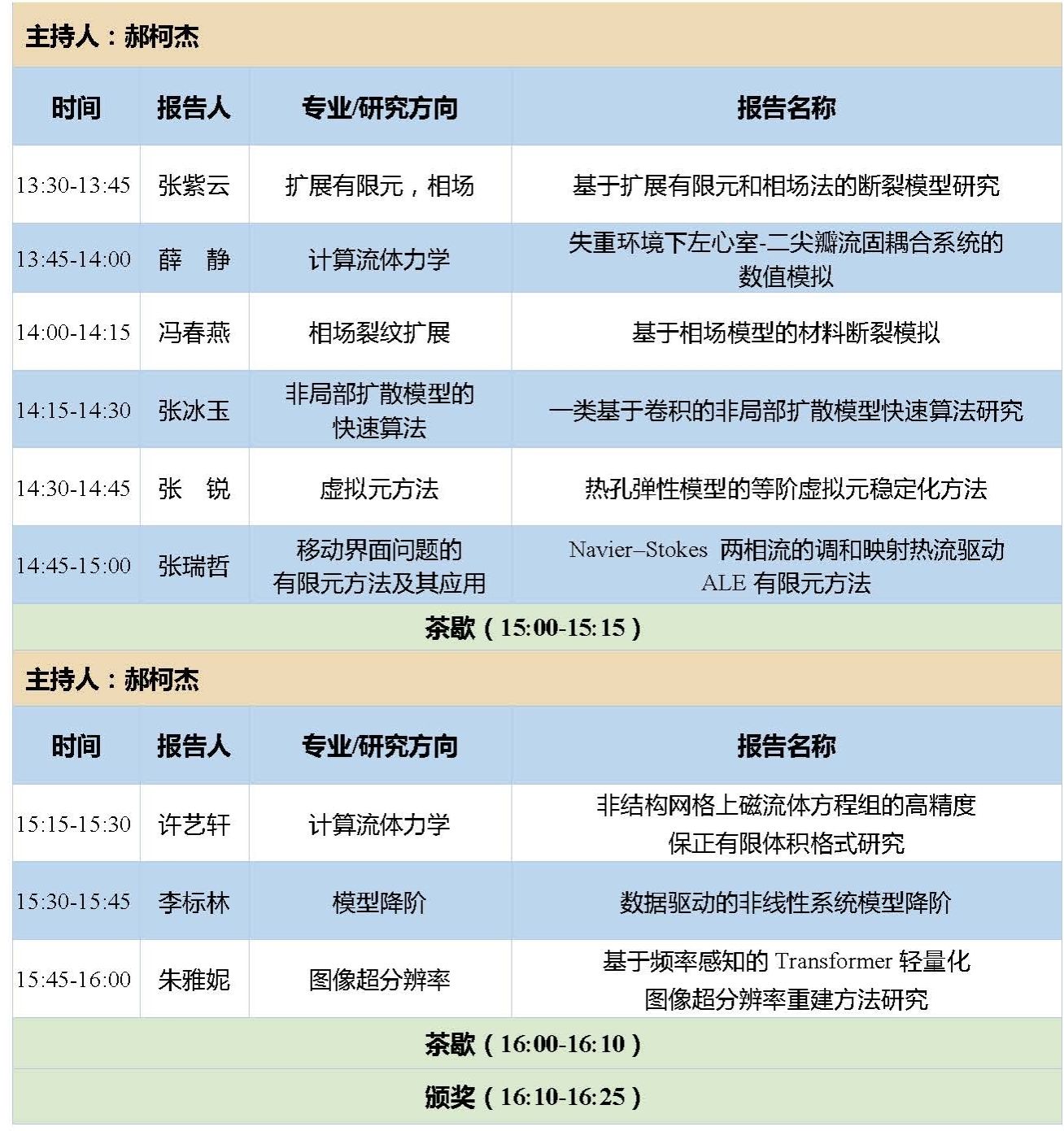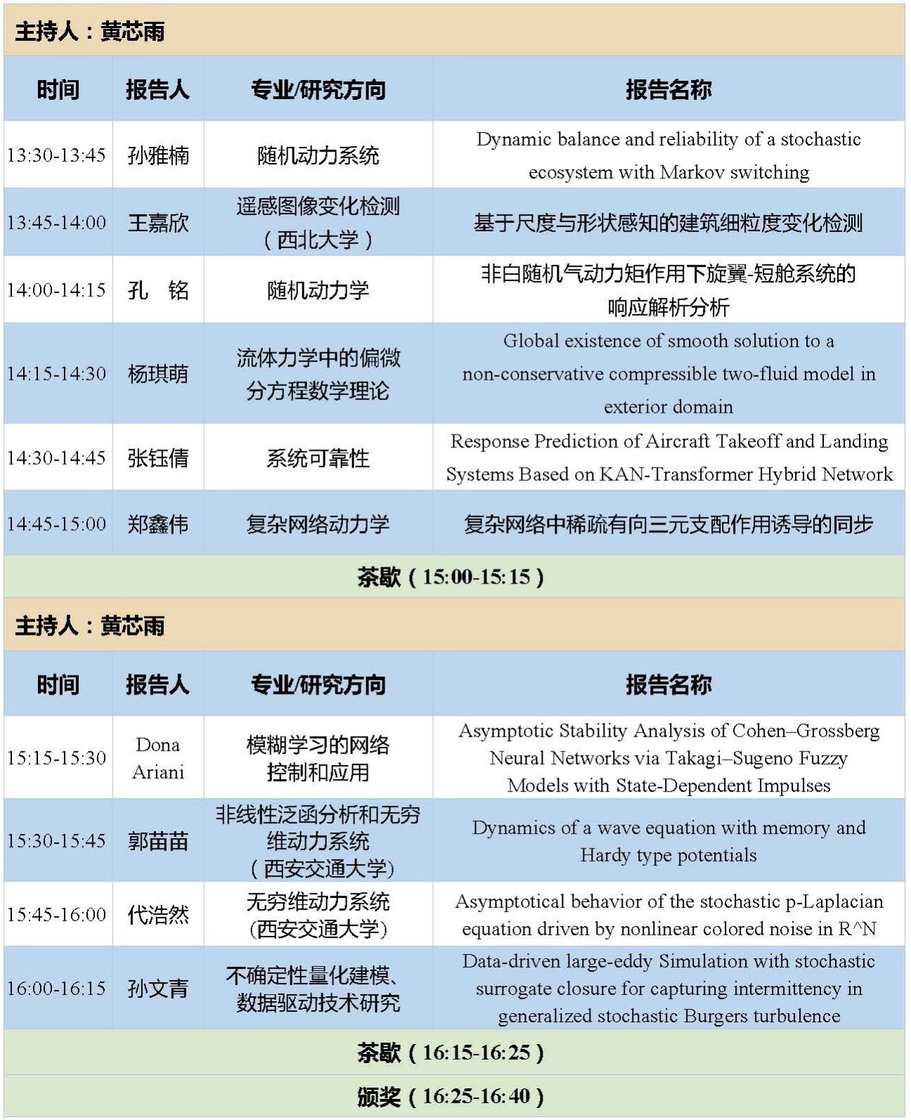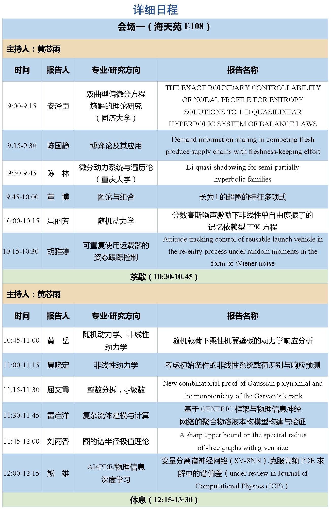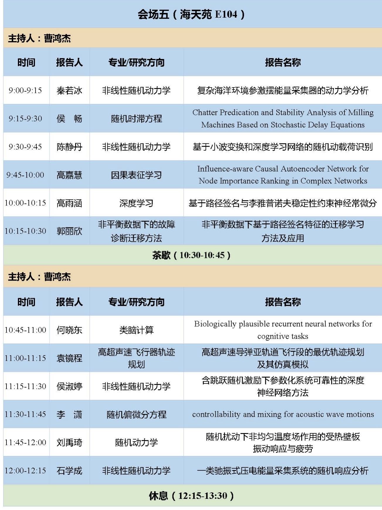 13:30-16:30 | 学生报告 | 五个分会场 | |
