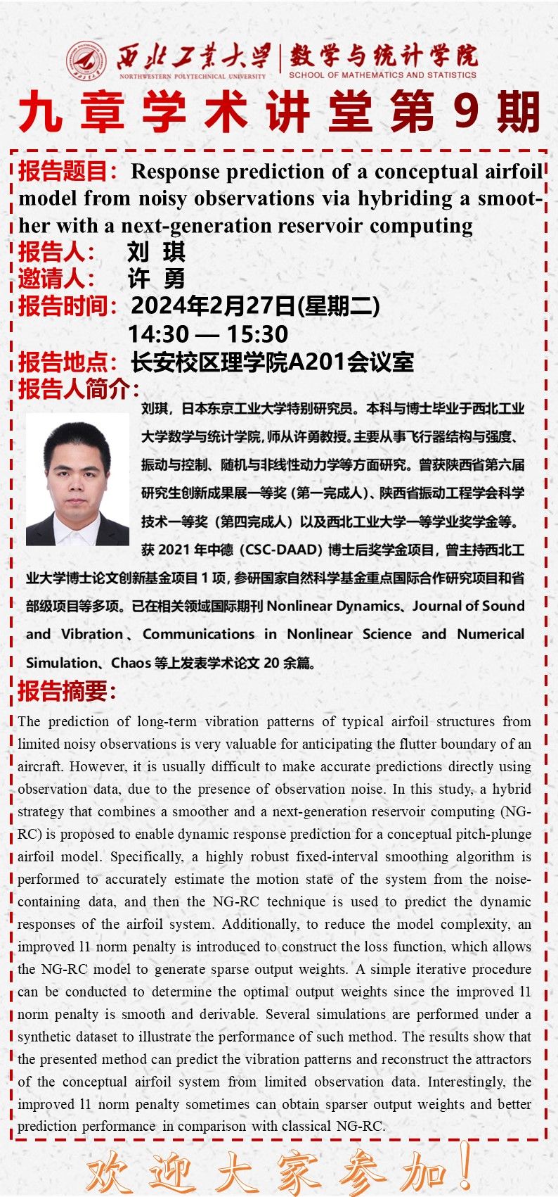 Response prediction of a conceptual airfoil model from noisy observations via hybriding a smoother with a next-generation reservoir computing