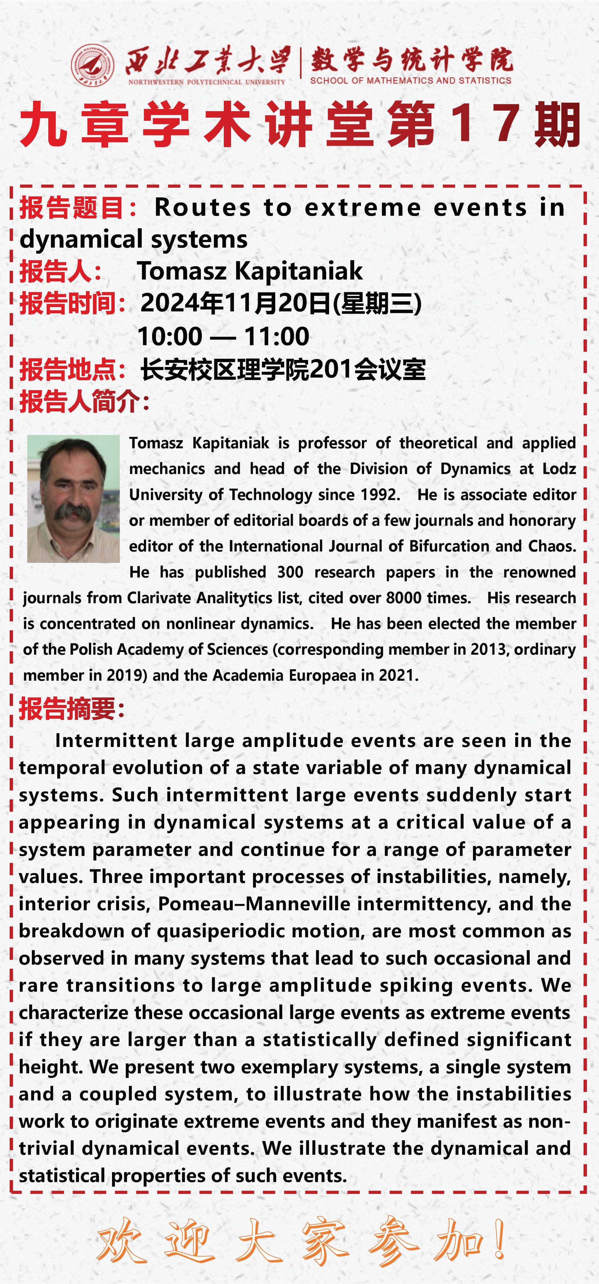 【九章学术讲堂第17期】Routes to extreme events in dynamical systems
