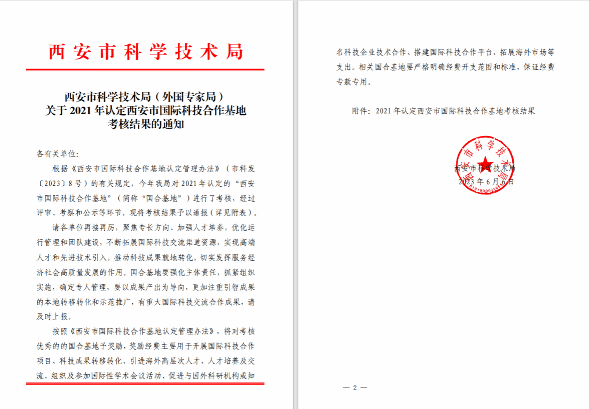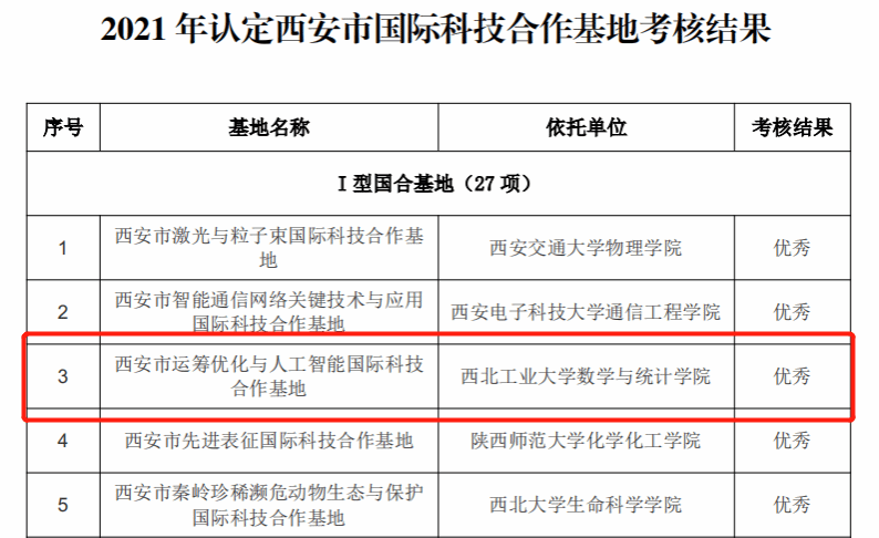 日前,西安市科学技术局(外国专家局)发布了《关于 2021年认定西安市国际科技合作基地考核结果的通知》。经过评审、考察和公示等环节,激情视频 西安市运筹优化与人工智能国际科技合作基地考核结果优秀,参与考核的27个I 型国合基地中共有11个考核结果优秀。