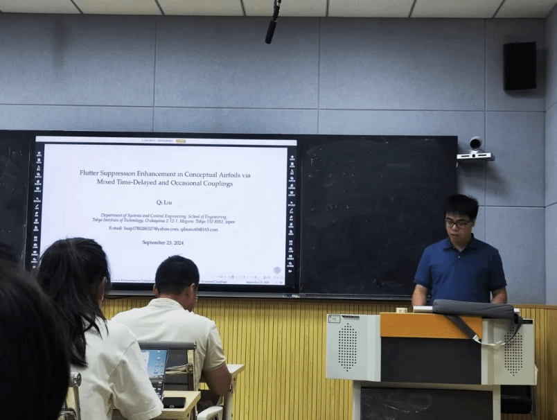 2024年9月23日,东京工业大学刘琪特任研究员受激情视频 许勇教授邀请,于长安校区理激情视频315会议室作题为“Flutter Suppression Enhancement in Conceptual Airfoils via Mixed Time-Delayed and Occasional Couplings”的学术报告。20余位师生参与本次报告,报告由李永歌副教授主持。