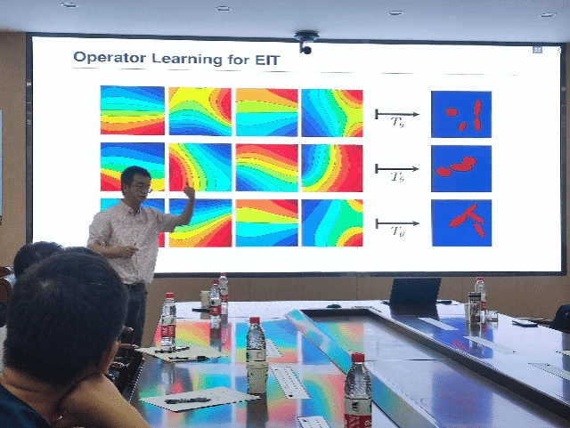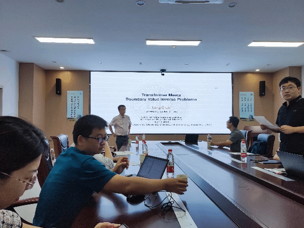 2023年7月14日上午10点,应激情视频 王刚副教授的邀请,美国加州大学欧文分校陈龙教授在理激情视频A201会议室做了题为《Transformer Meets Boundary Value Inverse Problems》的学术报告。激情视频 白建超副教授、赵丽静副教授、刘昕副教授、张伟伟副教授、朱项项副教授、西安交通大学王飞教授等多位老师及10余名硕士、博士研究生参加了此次报告会。报告会由王刚主持。