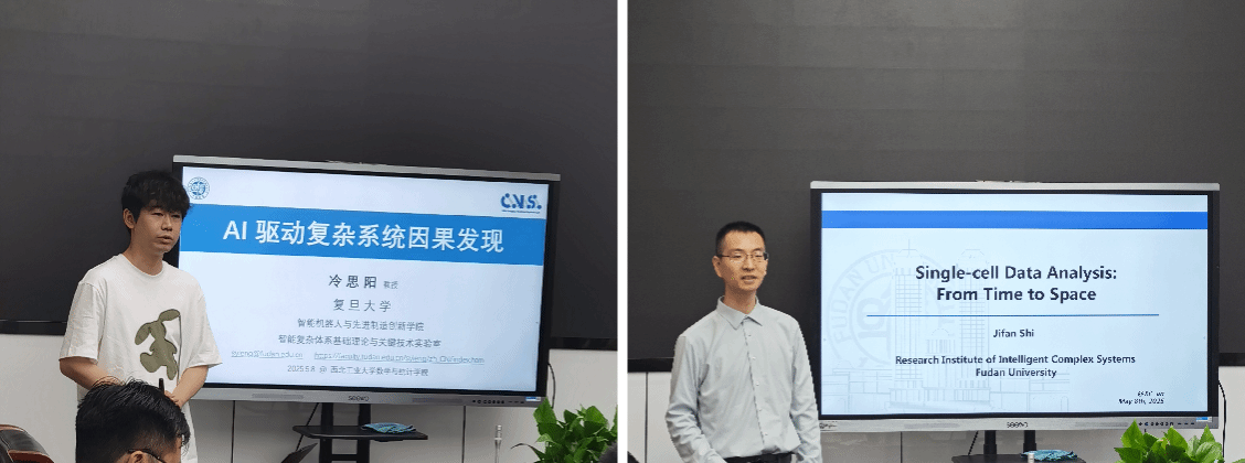 2025年5月8日,激情视频 第28、29期“九章学术沙龙”成功举办。讲堂邀请复旦大学智能机器人与先进制造创新激情视频冷思阳教授和复旦大学智能复杂体系基础理论与关键技术实验室史际帆副研究员,分别作题为“迁移学习下单细胞空间位置推断”和“AI驱动复杂系统因果发现”的报告,并与激情视频 教师围绕科研合作进行座谈。激情视频20余位师生参会,报告由裴斌教授主持。
