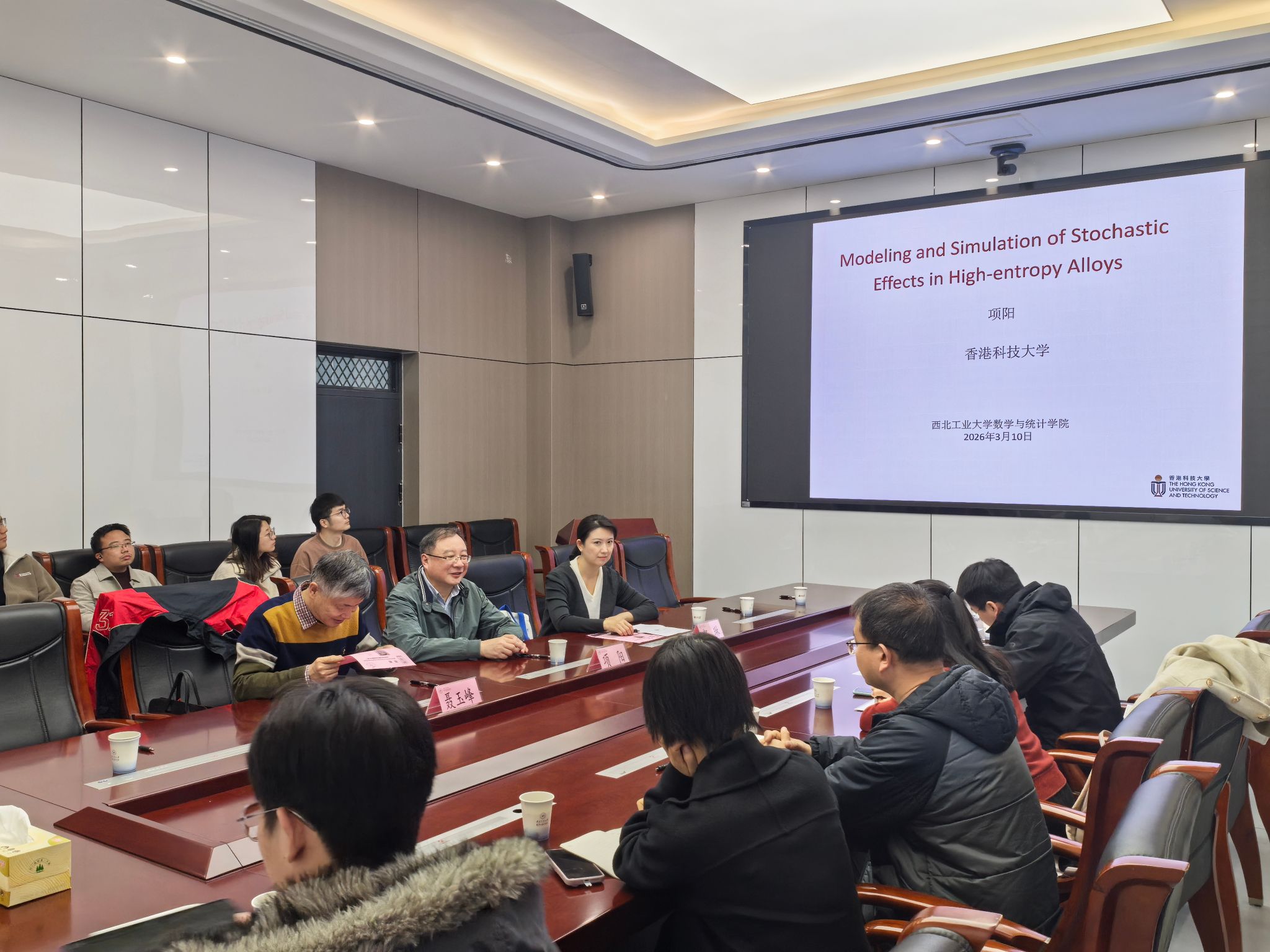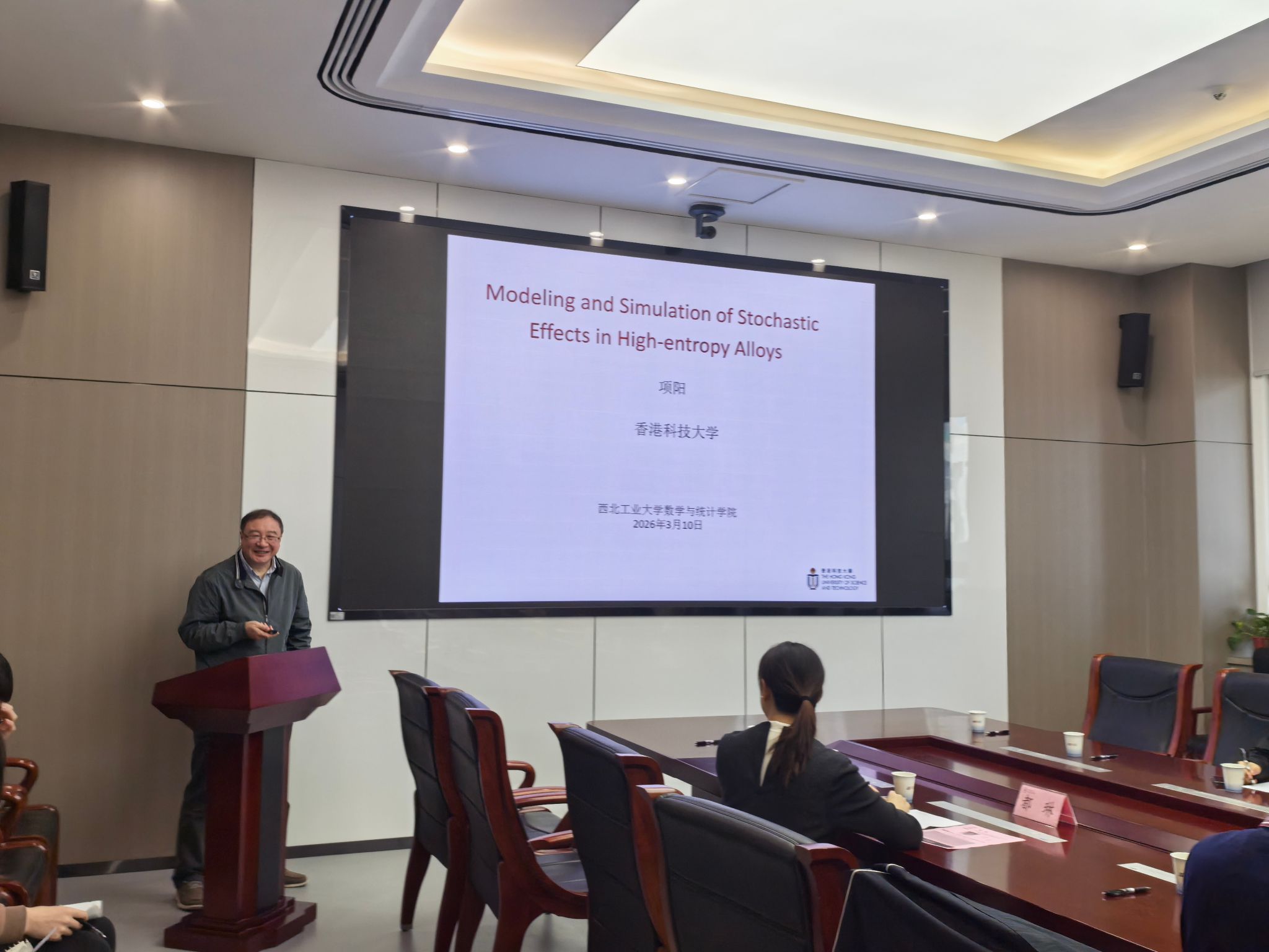 3月11日上午,“翱翔灵犀学术殿堂”第932期在长安校区海天苑大楼E103会议室举行。香港科技大学数学系项阳教授应激情视频 邀请作题为《Modeling Effects of Randomness in High Entropy Alloys》的学术报告。激情视频院长聂玉峰教授、副院长都琳教授等20余位师生参会,报告由聂玉峰主持。