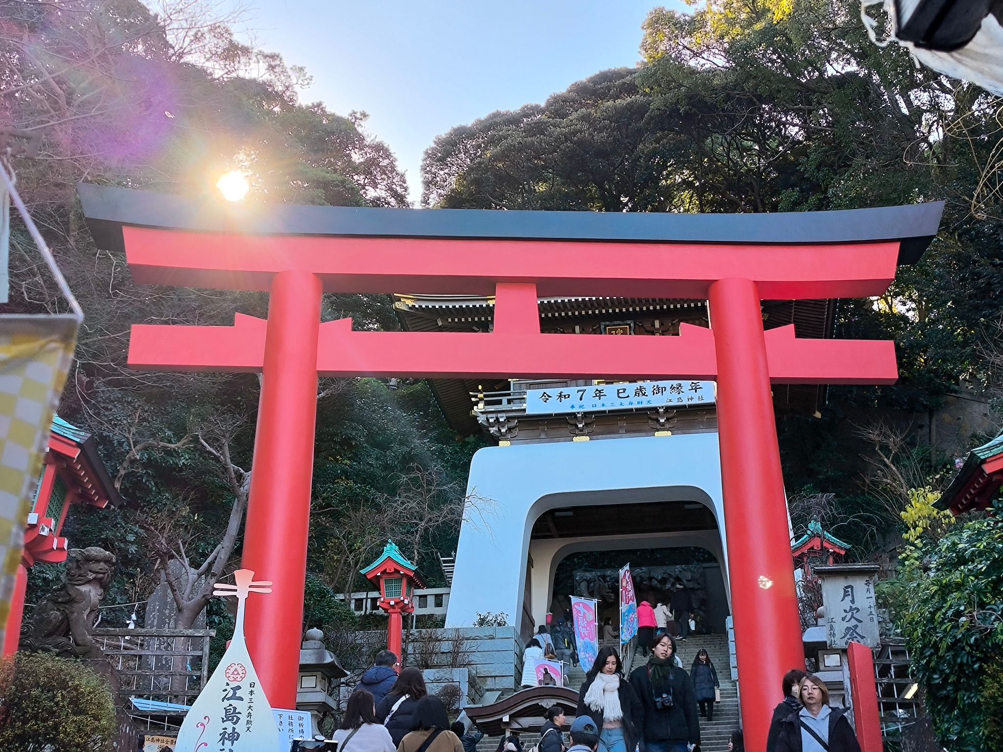 1 月 18 日,课程结束后,在肖老师和黄老师的带领下,开启了为期两天周末的人文参访之旅。首站是镰仓大佛,它伫立于古都镰仓的净土宗寺院高德院内,是镰仓时期塑像艺术的代表,建于1252年的佛像,以其宋代风格和精湛工艺,被列为日本国宝,见证了历史的沧桑。紧接着,乘坐电车前往《灌篮高手》的取景地——镰仓高校前,沿途的海岸风光美不胜收,让人心旷神怡。午后的时光,来到了湘南的代表景点——江之岛。岛上风景如画,古老的神社与各种传说故事相映成趣,浓厚的文化氛围让人流连忘返。夜幕降临,转向远处的富士山,这座被誉为日本三灵山之一、日本百名山的山峰,以“芙蓉峰”等美称著称,是日本人文标志的象征。