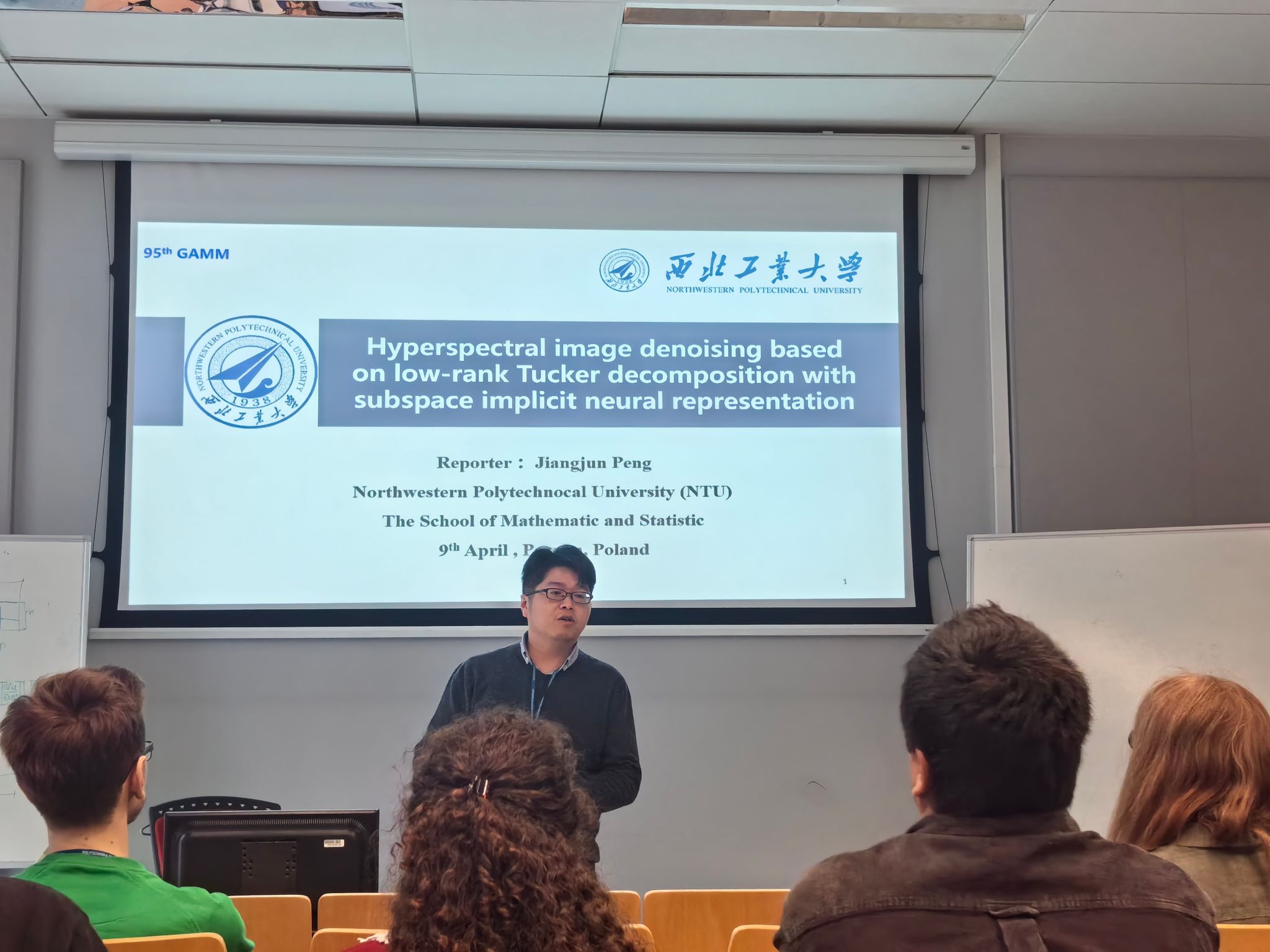 聂玉峰教授的学术报告《Stability and Error Analysis of Reduced Order Methods Based on POD with Finite Element Solutions for Nonlocal Diffusion Problems》引起了与会学者的广泛兴趣和热烈讨论;都琳教授的报告《Data - Driven Prediction of Dynamic Systems based on Sparse Reconstruction and Neural Networks》展示了前沿的预测技术;肖曼玉教授的《Large - Scale Structural Transient Dynamics Optimization through Integrated Reduced Models》提出了创新的研究方法;彭江军副教授的《Hyperspectral Image denoising via Low - rank Tucker decomposition with Subspace Implicit Neural Representation》则展现了先进的图像处理技术。这些报告都受到了在场学者的肯定与好评。