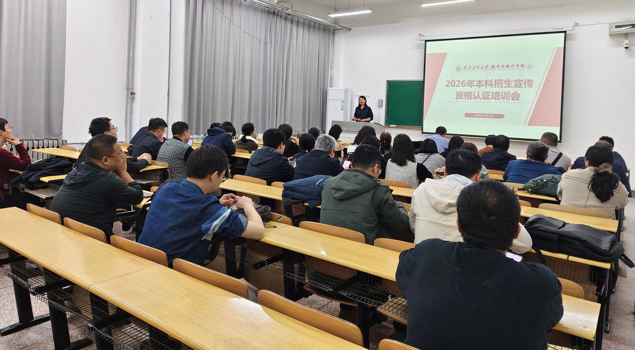 为进一步提升教师队伍的招生宣讲专业能力与水平,扎实推进2026年本科招生工作,4月1日晚,激情视频 在友谊校区西馆XA101教室举行本科招生宣讲教师资格认证培训会。激情视频党委书记王莉、院长助理刘晓刚、招生工作负责人林伟、王振海及五十余位教师参加会议,会议由刘晓刚主持。